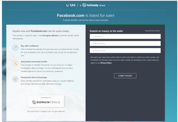Several different domain registration companies today listed the domain Facebook.com as up for sale. This happened thanks to automated systems that look for registered domains which appear to be expired, abandoned or recently vacated. There was never any reason to believe Facebook.com would actually be sold as a result, but it’s fun to consider how many billions of dollars it could fetch on the open market.
